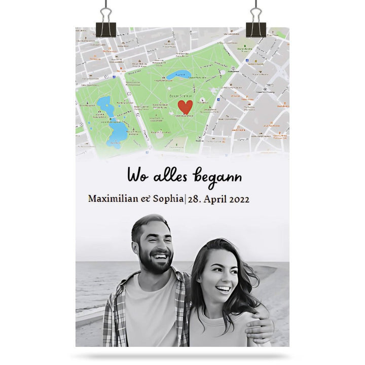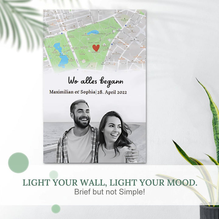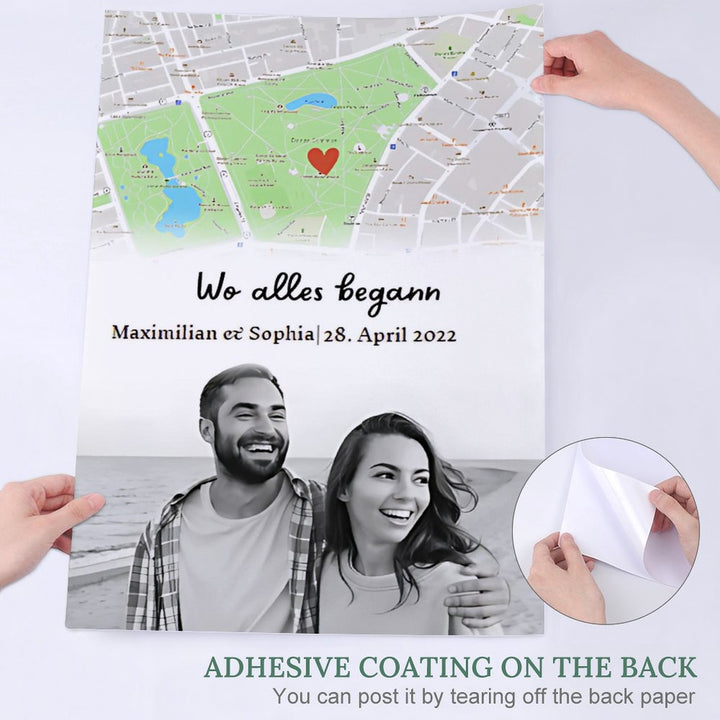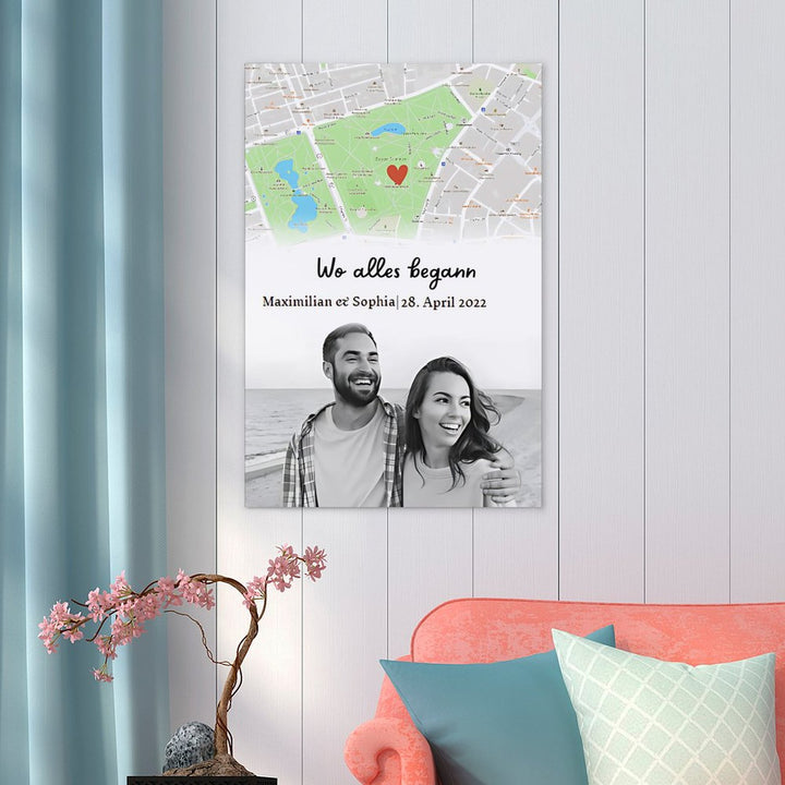 Personalisierte Landkarte "Wo alles begann" mit Foto & Datum - Romantisches Geschenk für Paare zum Jahrestag