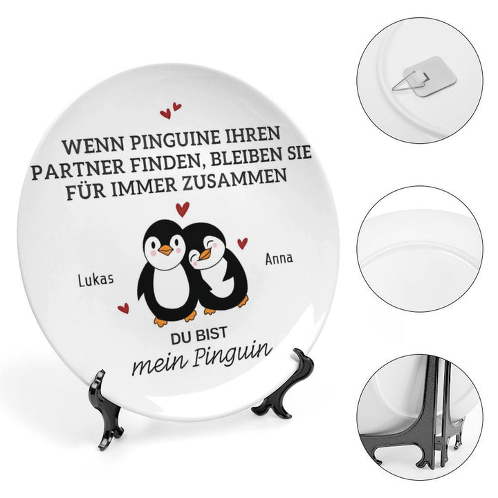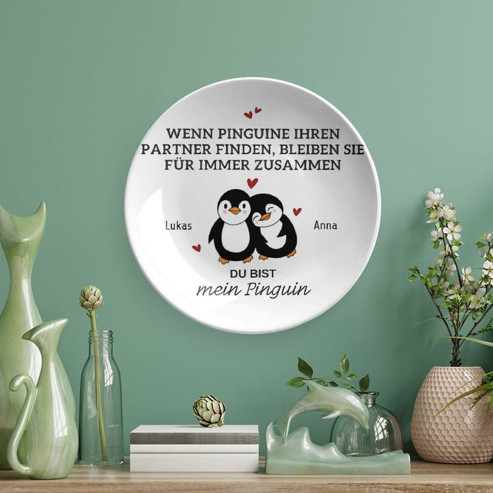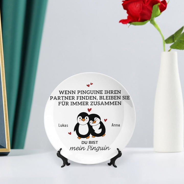 Personalisierter Pinguin Teller "Du bist mein Pinguin" mit Namen - Romantisches Geschenk für Paare